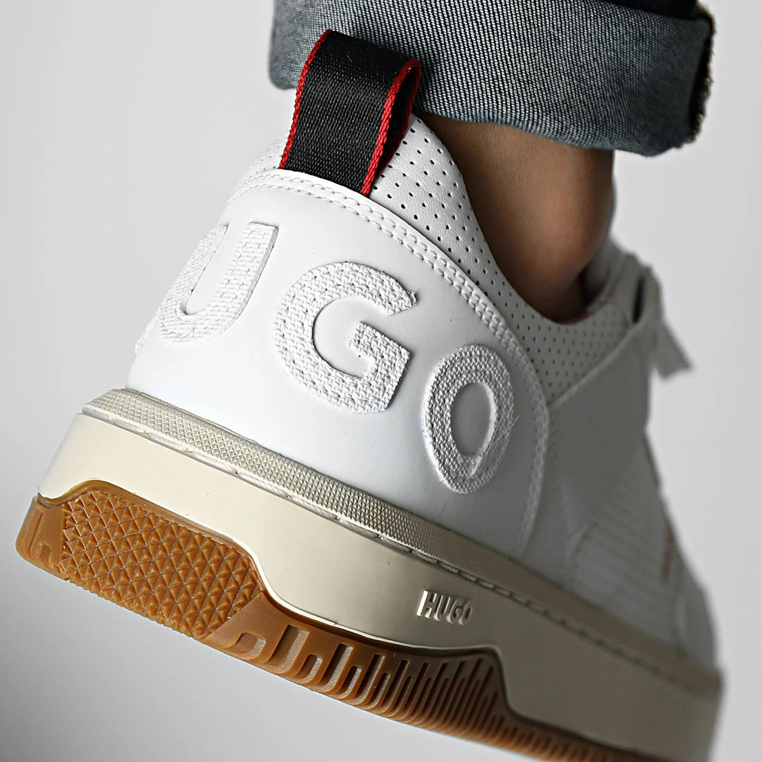 • Patch HUGO cousu sur la languette