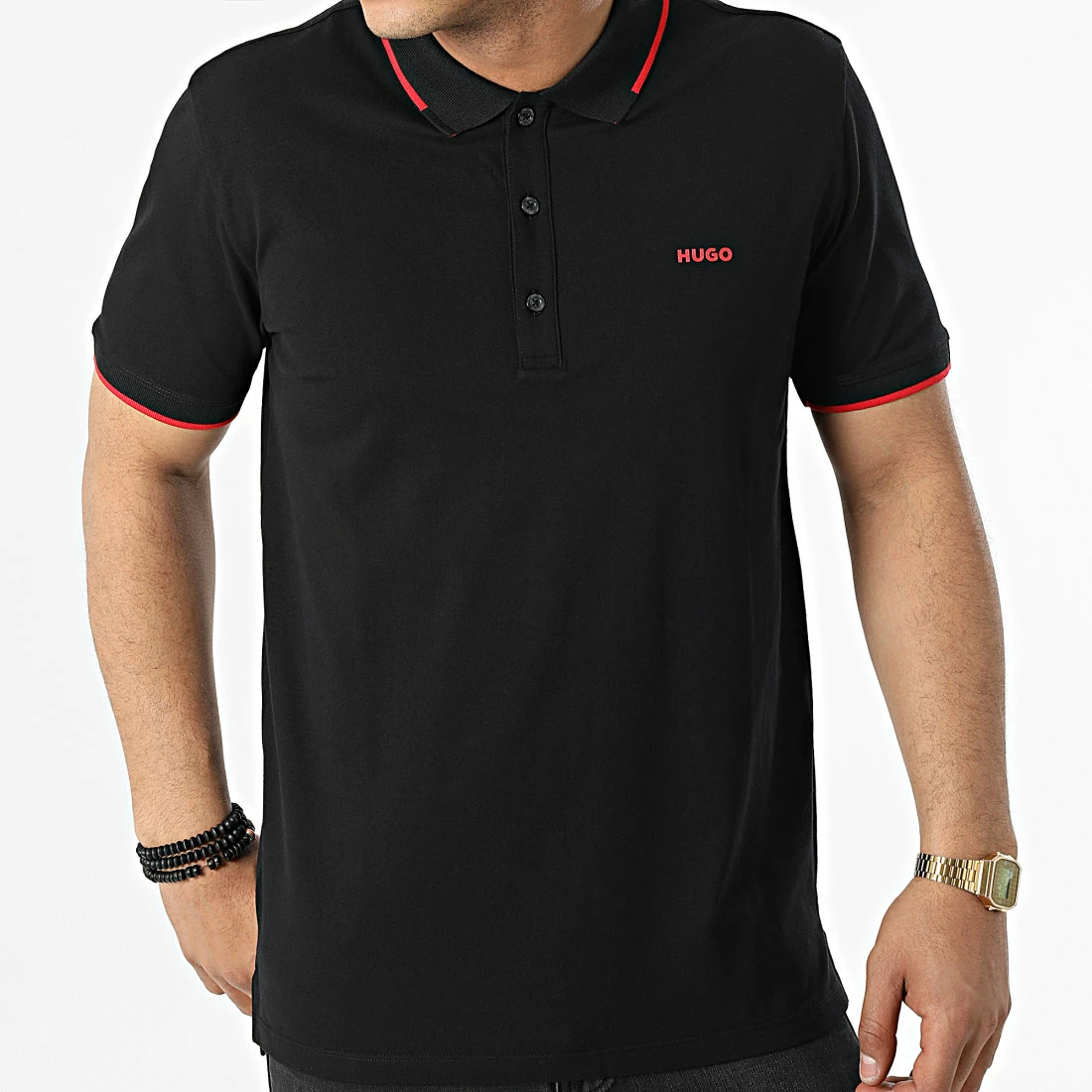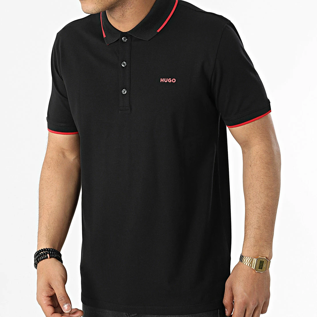 • Polo à manches courtes tendance avec visuel HUGO en relief