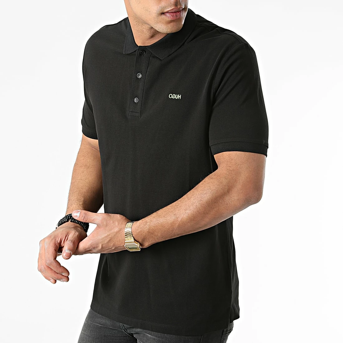 • Polo manches courtes brodé ton sur ton visuel HUGO inversé sur la poitrine