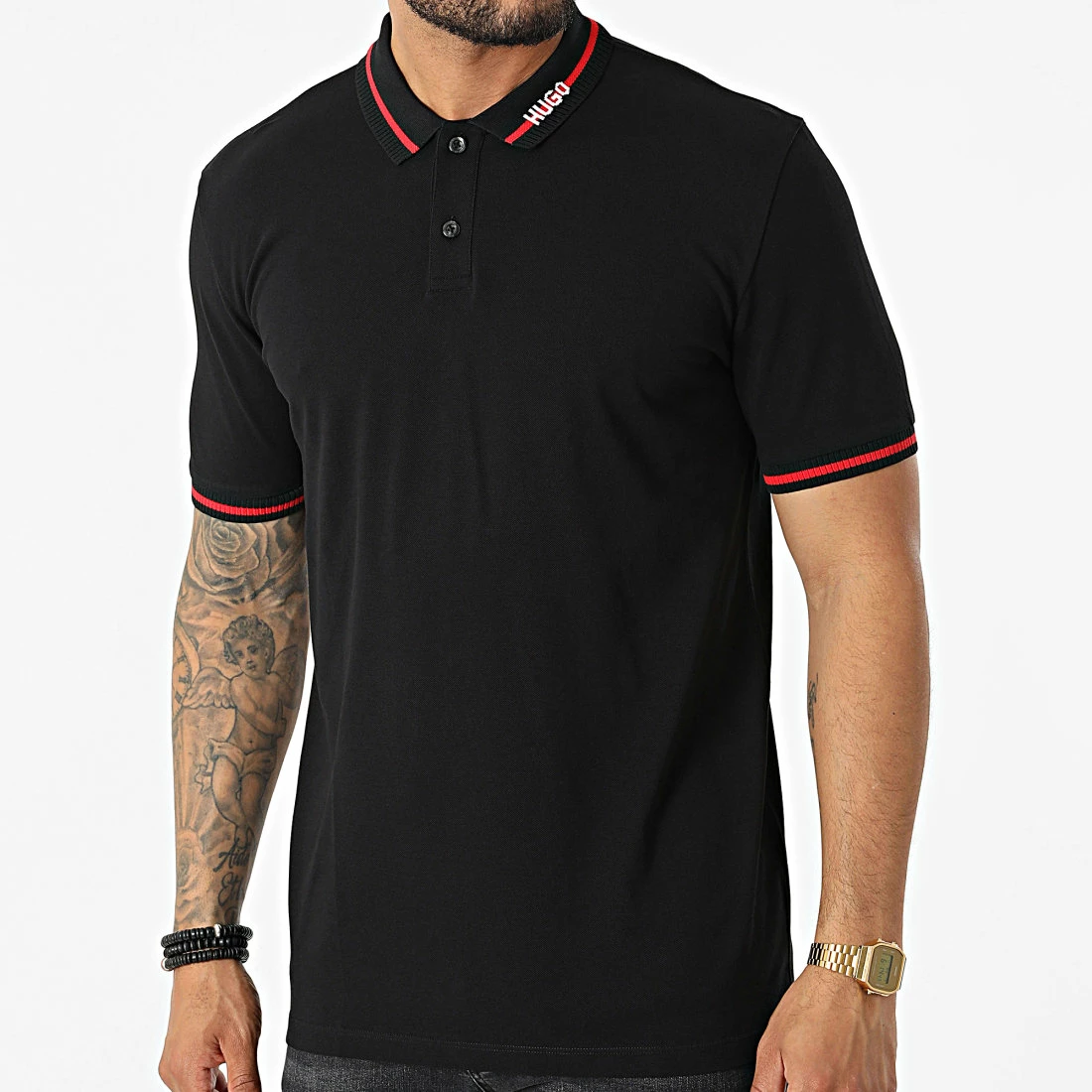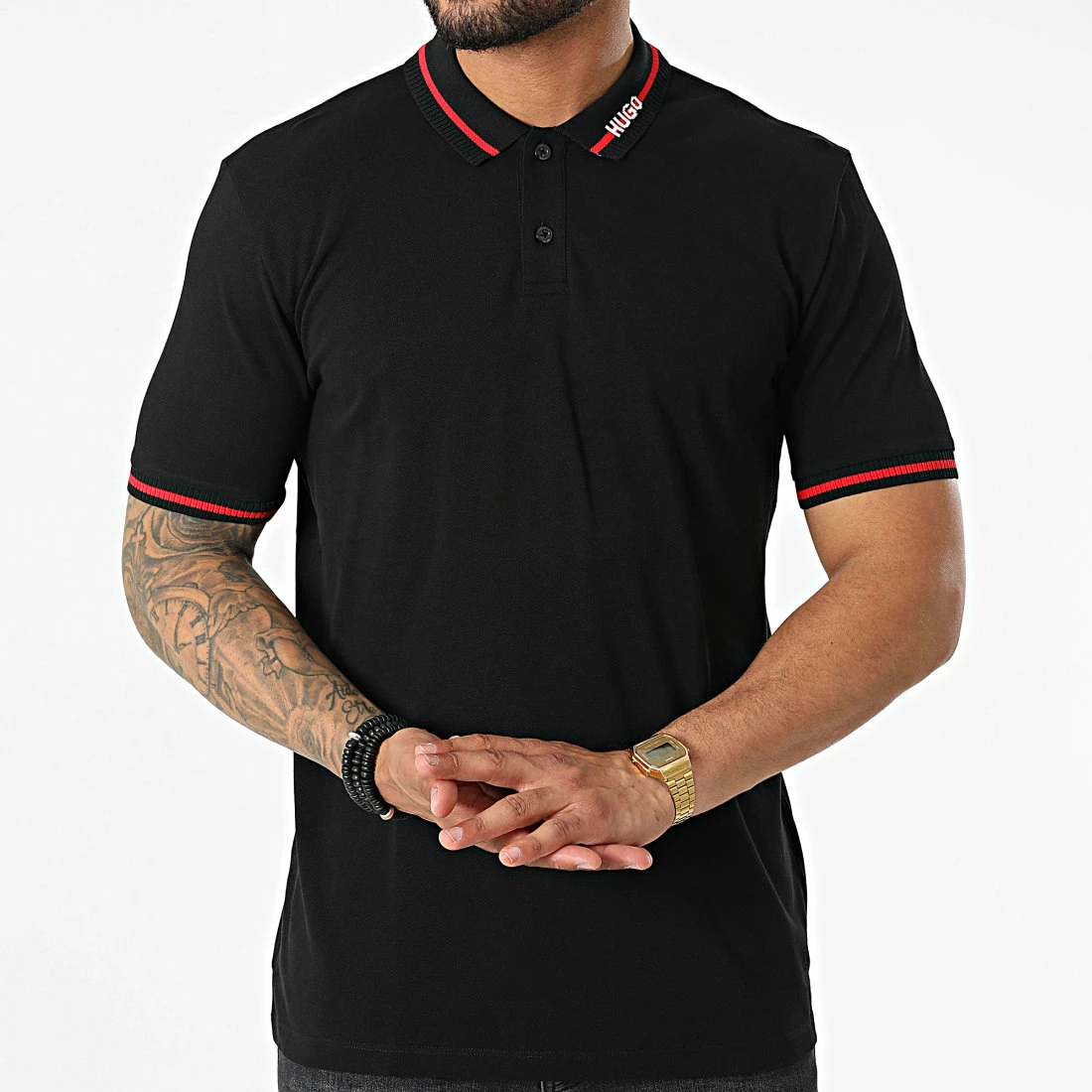 • Polo manches courtes tendance tissé Hugo sur le col