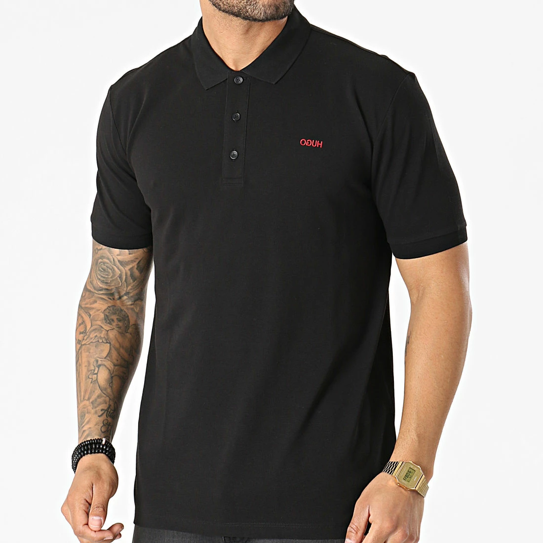 • Polo manches courtes brodé visuel HUGO inversé sur la poitrine