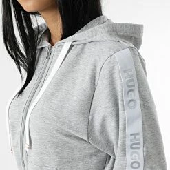 Les meilleures critiques de ✔️ Sweat Zippé Capuche Femme A Bandes 50483855 Gris Chiné de HUGO ❤️