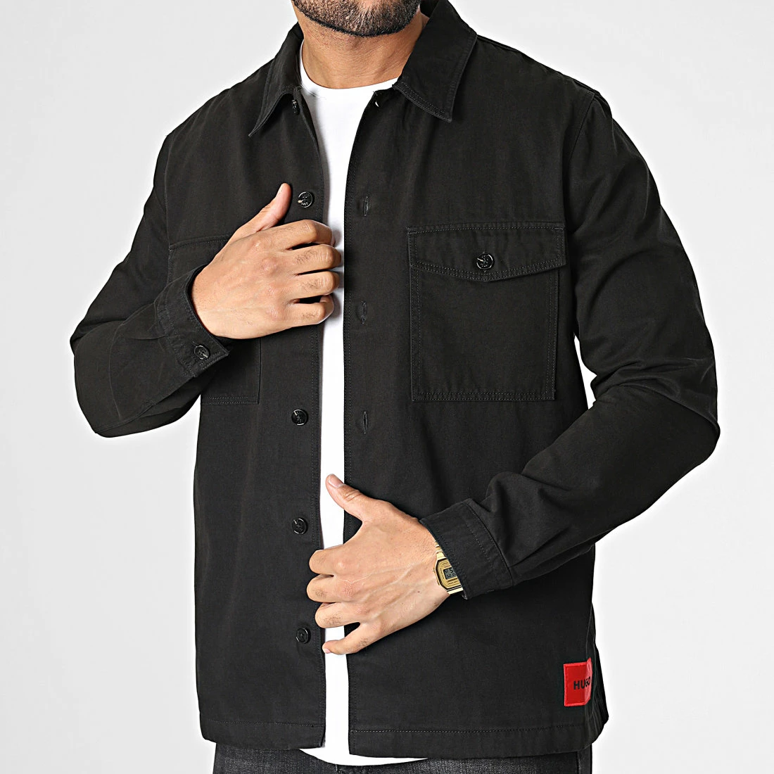 • Surchemise jean tendance avec patch HUGO brodé à la taille