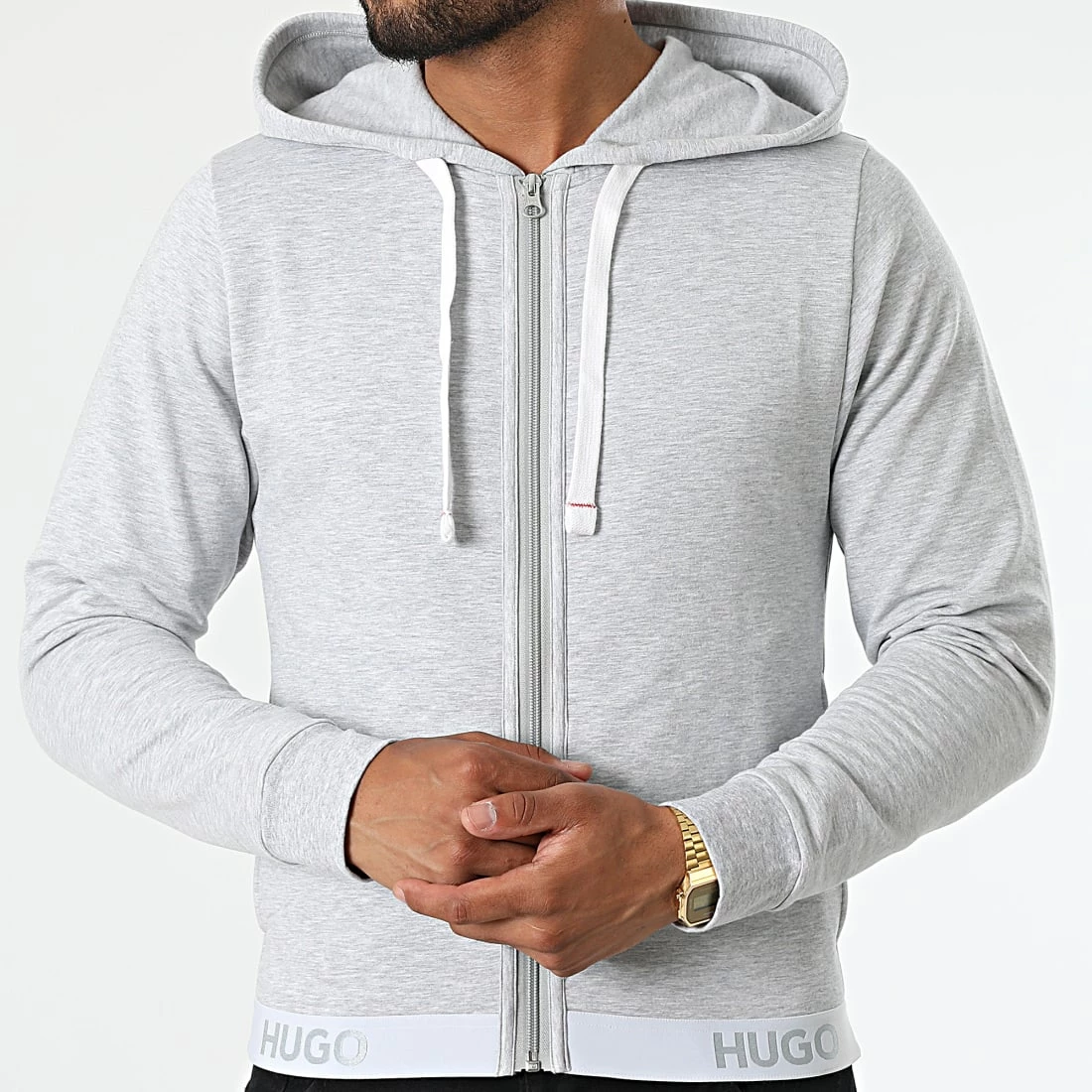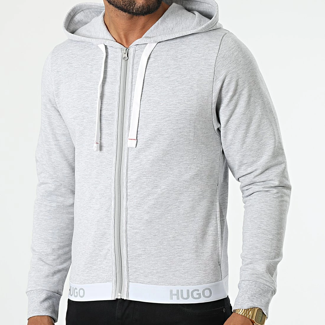 • Sweat zippé capuche tendance avec inscription HUGO brodé à la taille