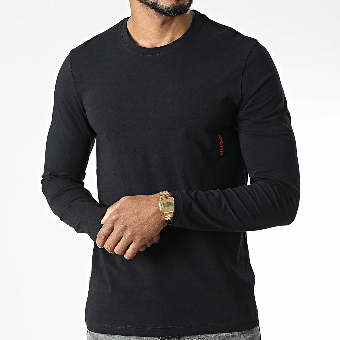• Tee shirt à manches longues tendance avec logo HUGO appliqué sur le côté gauche